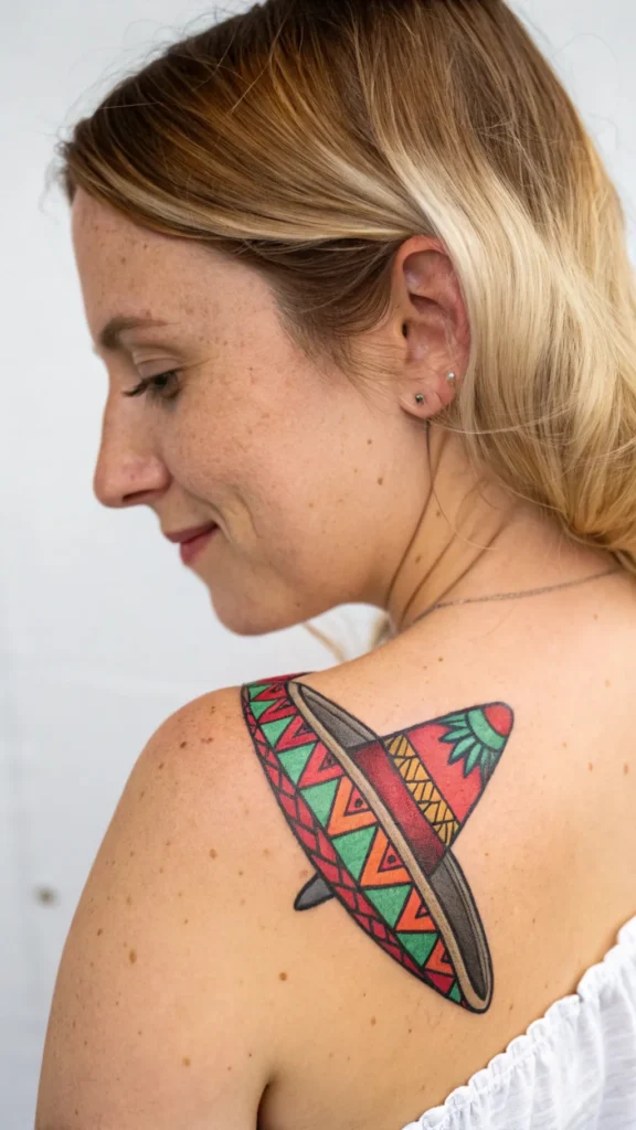 Vibrant embellishments can take your sombrero tattoo to the next level. Consider adding intricate details like delicate stitching or floral patterns to give your sombrero a more authentic look.