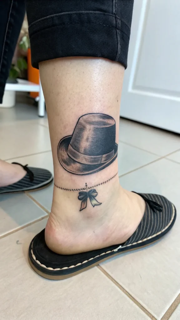 When it comes to hat tattoo designs, you’re not limited to elaborate fedoras; sometimes simplicity takes center stage.