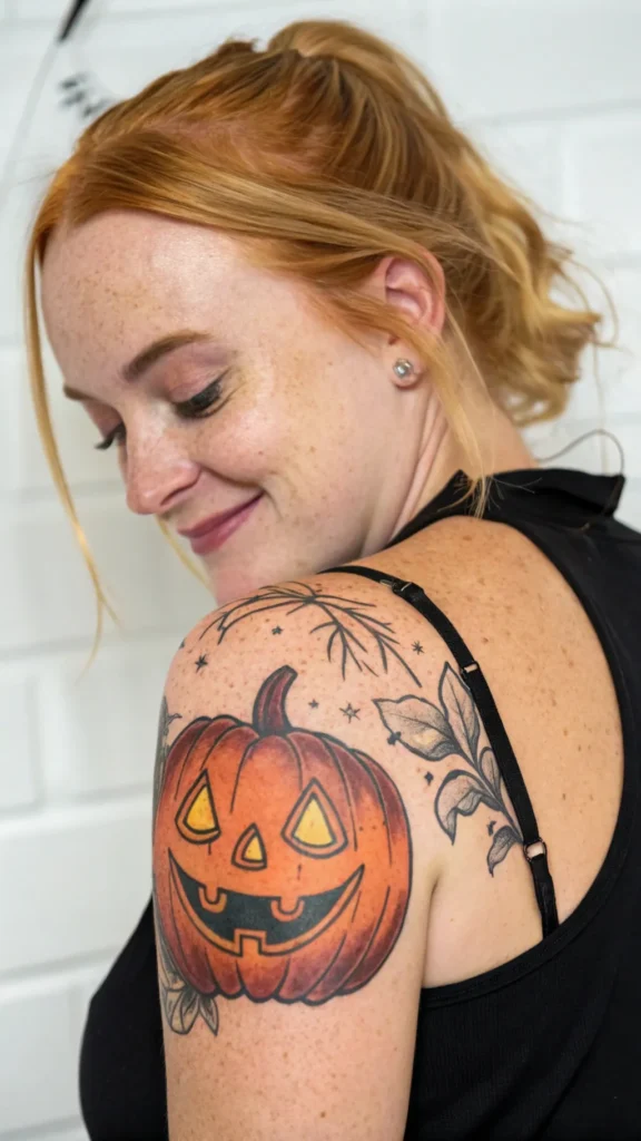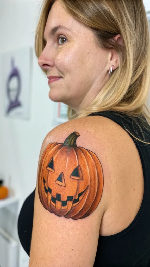 If you’re looking for a tattoo that captures the essence of the season, a carved pumpkin design is an excellent choice.