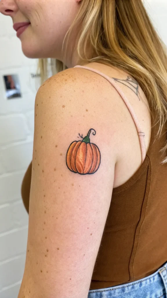 Your small pumpkin wrist tattoo can be a delicate, whimsical design that captures the essence of fall.