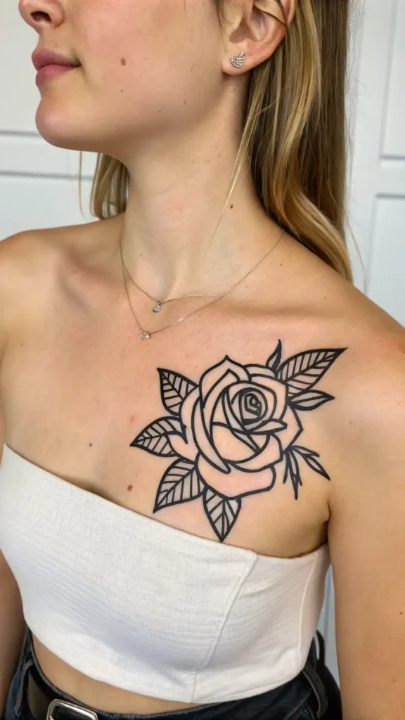 This design is perfect for those who prefer simple elegance and subtle symbolism. The delicate outline of the rose, often in a single bold line, creates a striking visual effect that’s both modern and timeless.