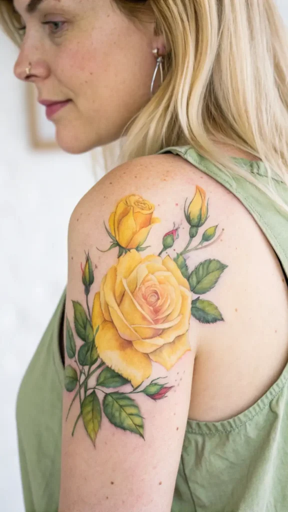This subtle elegance will make your yellow rose tattoo design feel more sophisticated and refined. As you consider your design, think about the message you want to convey.